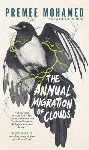 Premee: In The Annual Migration of Clouds, a young woman named Reid lives and works at a university campus in Edmonton that is no longer a university, just a sturdy place to which people retreated after numerous climate disasters caused the collapse of technological society decades years ago. She’s also infected with a new incurable disease that makes her constantly on edge about whether she’s doing or thinking things or whether it’s the disease doing it—and so is her mother. When she gets a rare chance to study at one of the few remnants of pre-collapse society, at a university far in the mountains, she has to choose between leaving her mother and community or staying with them to help rebuild and work towards a better future.