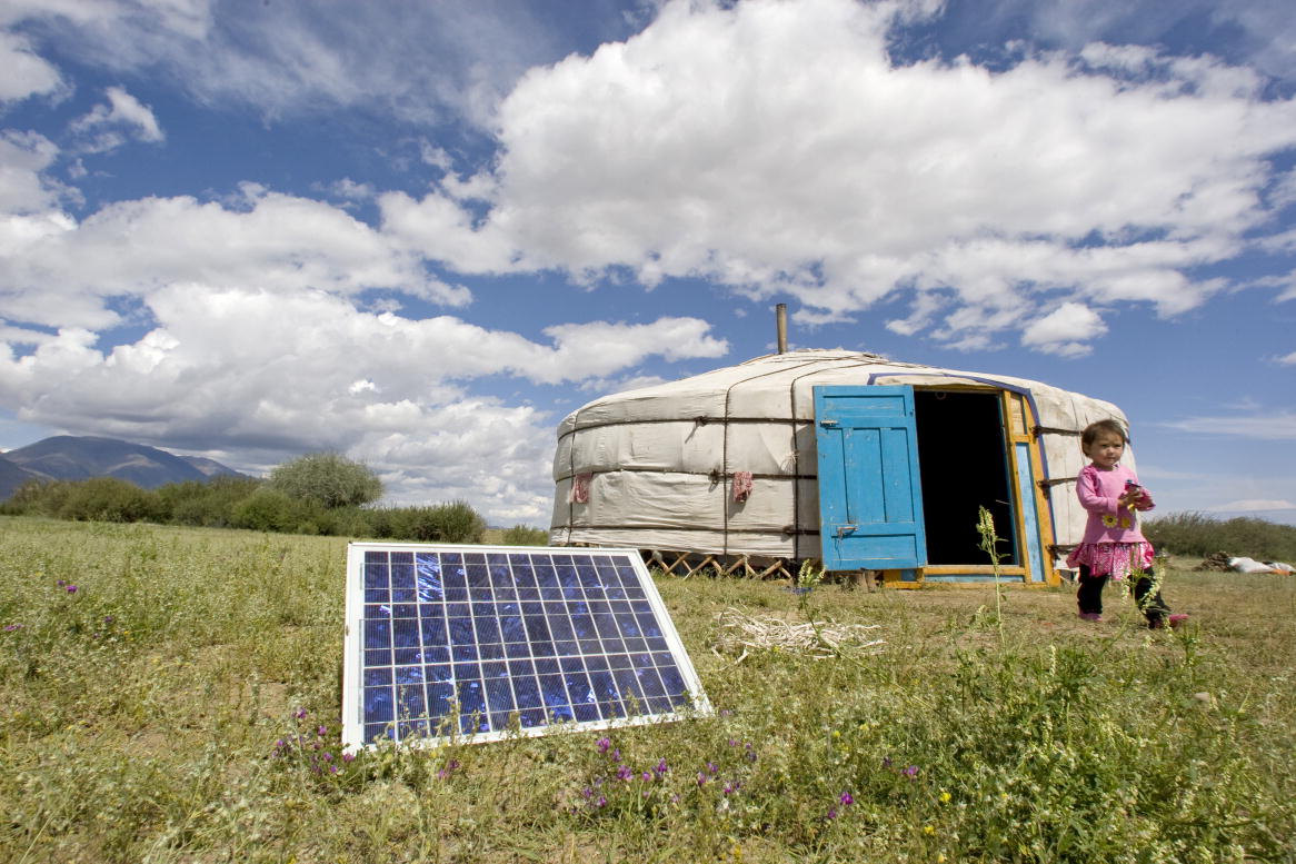 A family in Tarialan, Mongolia uses a solar panel. Photo by Eskinder Debebe. Creative Commons License